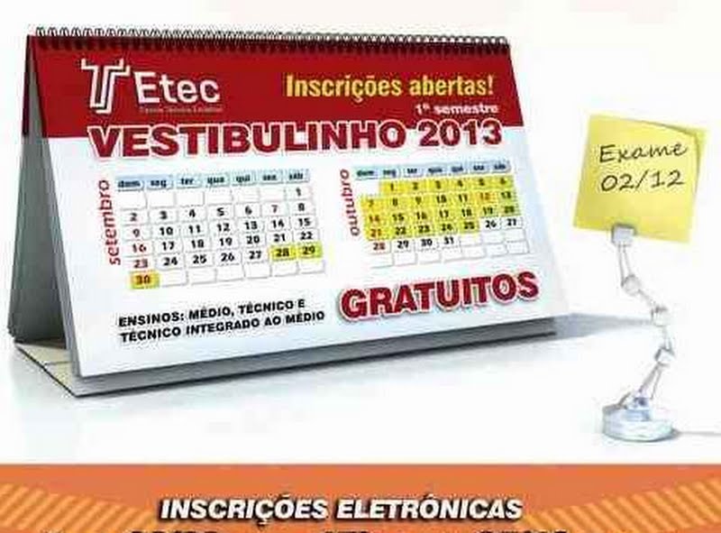 Inscrições para o Vestibulinho das Etecs – 1º semestre de 2013