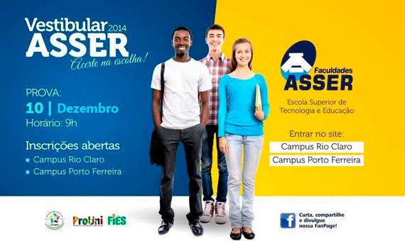 Estão abertas as inscrições para o vestibular 2014 da Escola de Tecnologia e Educação de Porto Ferreira – Asser-PF, cujas provas acontecem no próximo dia 10 de dezembro.
