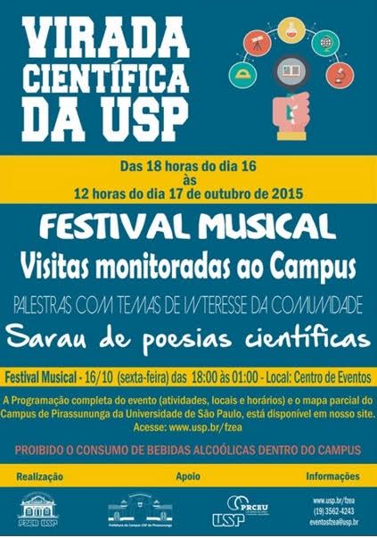 Das 18 horas do dia 16 às 12 horas de 17 de outubro haverá mais uma edição da Virada Científica da USP/Pirassununga. A FZEA/USP estará de portões abertos para toda a comunidade. Participem!