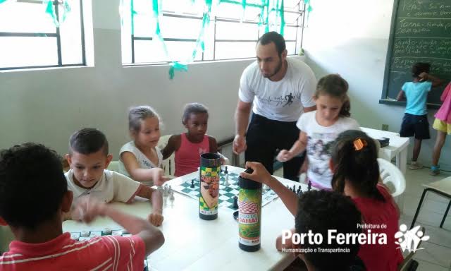 Alunos conveniados do Programa Segundo Tempo que são atendidos no Núcleo do bairro Cristo Redentor, na Emef Professor Bráulio Teixeira, estão aprendendo jogar xadrez, um “esporte mental” que estimula a criança em vários aspectos, como concentração, cálculo, raciocínio rápido, disciplina, habilidades para sair de situações inesperadas e estimula a autoconfiança.