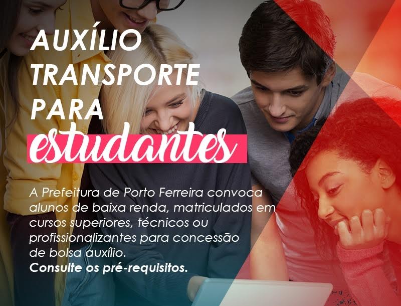 A Prefeitura de Porto Ferreira está publicando edital no qual convoca os estudantes matriculados e frequentando cursos de ensino superior, técnico e profissionalizante para inscrição de concessão de auxílio financeiro para o pagamento do transporte de estudantes.
