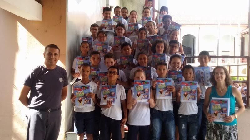 Os alunos dos 5º anos do Ensino Fundamental das cinco escolas municipais (Caic – Jd. Independência, Ruth Barroso – Porto Bello I, Bráulio Teixeira – Cristo Redentor, Nadir Zadra – Serra D´Agua e Sud Mennucci – Centro) receberam a primeira aula do Programa Educacional de Resistência às Drogas e à Violência da Policia Militar do Estado de São Paulo. Nesta primeira aula os alunos conheceram o Instrutor do Programa em Porto Ferreira ,Cabo PM Osni Luciano Martins, e receberam o Livro “Caindo na Real”, que contém as aulas do curso (livros doados pelo Governo do Estado de São Paulo), como também fizeram junto com o Osni o juramento dos “Combinados do Proerd”, que na verdade são regras de conduta que eles terão durante as aulas.