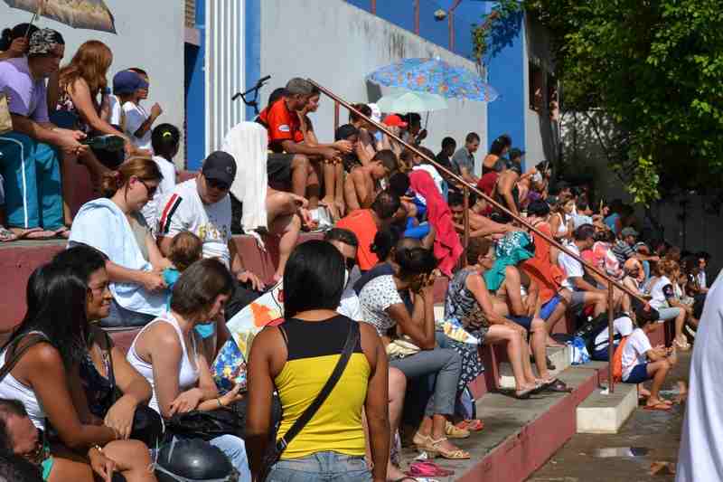 Os pais dos alunos compareceram ao festival, prestigiando os filhos e lotando a arquibancada das piscinas.