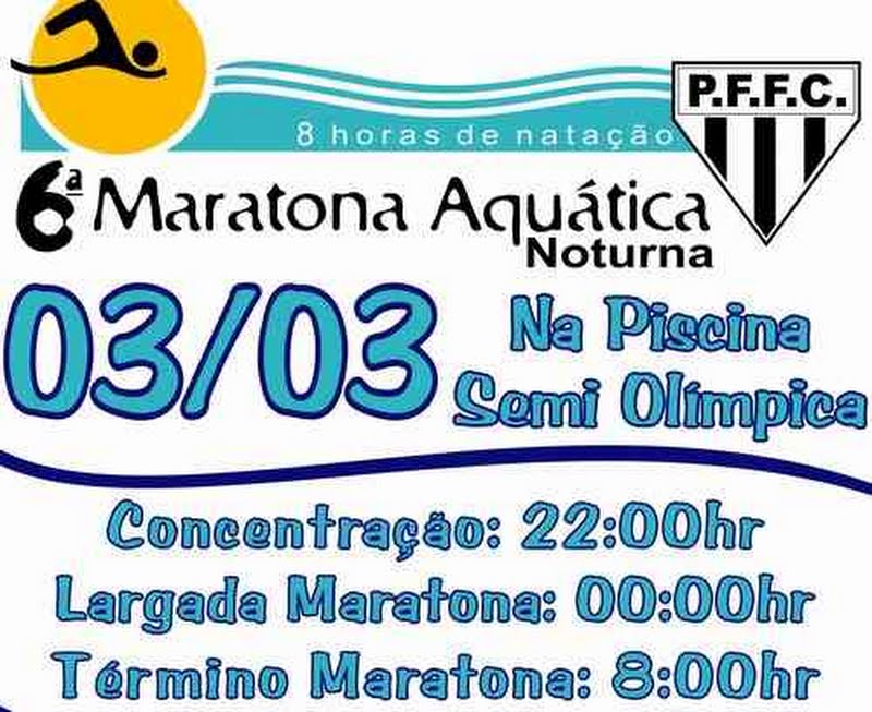 Dia 03 de março, sexta feira, na piscina semiolímpica, acontece a sexta edição da Maratona Aquática no P.F.F.C.