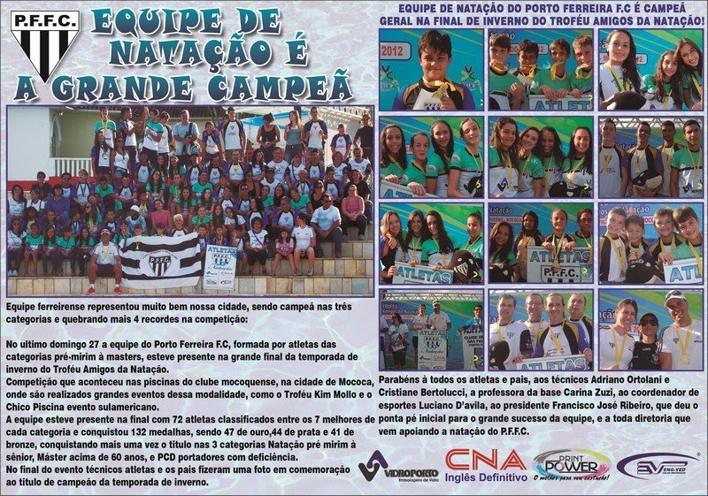 No último domingo, 27 de maio, a equipe de Natação do PFFC formado por atletas das categorias pré-mirim à master esteve presente na grande final da temporada de inverno do Troféu Amigos da Natação.