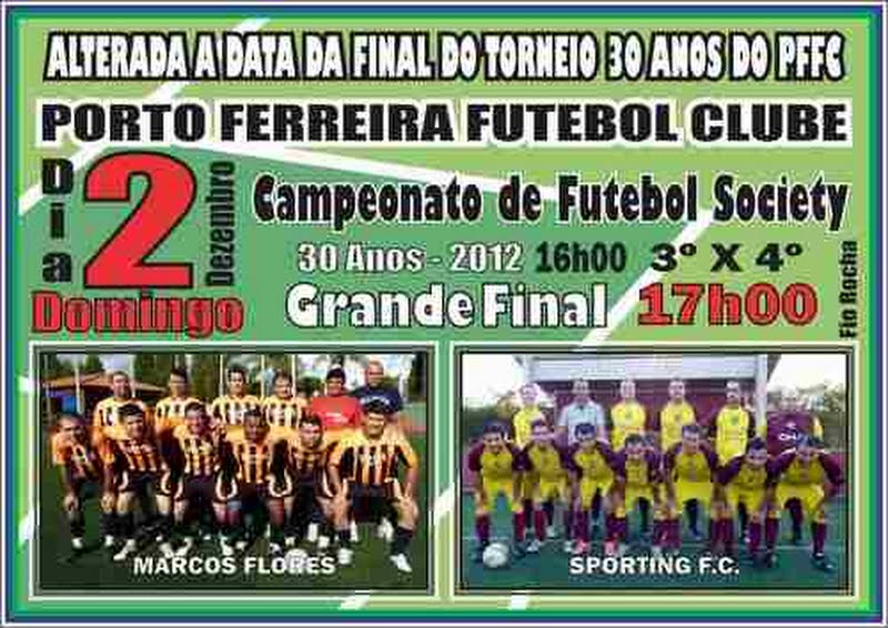 Sporting F.C. e Marcos Fores disputarão o título do Torneio 30 Anos do Porto Ferreira Futebol Clube no próximo domingo, dia 02 de dezembro de 2012, às 17 horas, na Sede Recreativa do Clube (piscinas).