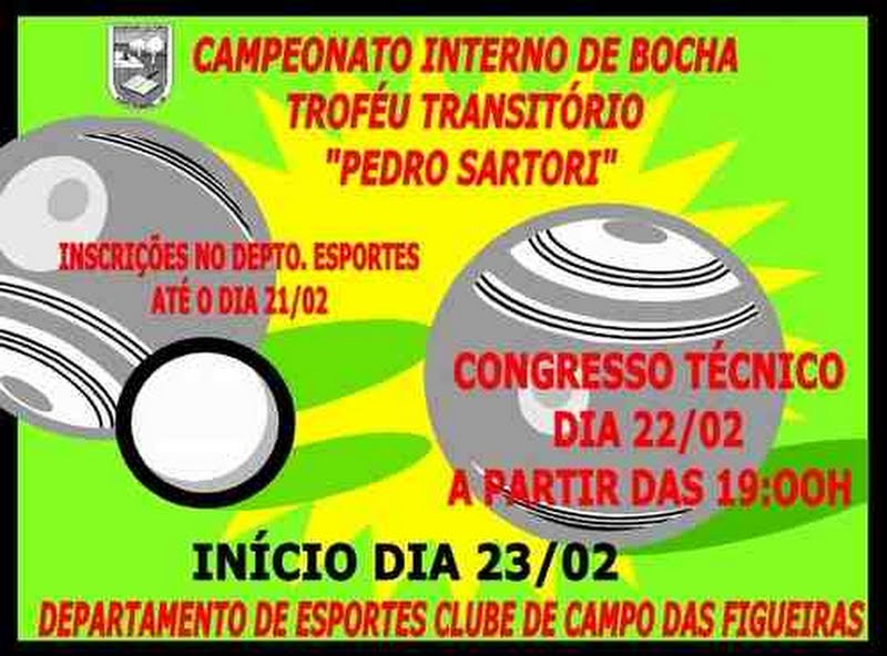 O Clube de Campo das Figueiras realizará no dia 23 de fevereiro o Campeonato Individual de Bocha Troféu Transitório “Pedro Sartori”.