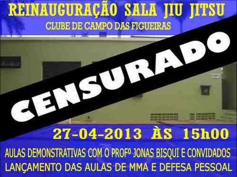 O Clube de Campo das Figueiras está convidando todos os associados para prestigiarem a reinauguração da sala de Jiu Jitsu que acontecerá no dia 27 de abril de 2013 (sábado), às 15 horas, ocasião em que haverá o lançamento de novas modalidades, como MMA e defesa pessoal e aulas demonstrativas com o professor Jonas Bisqui e convidados.