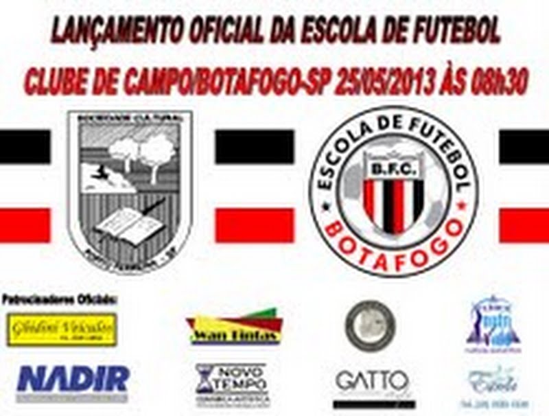 No próximo sábado (25/05) haverá o lançamento oficial da Escola de Futebol Clube de Campo/Botafogo F.C., a partir das 08h30, no Campo de Futebol Society.