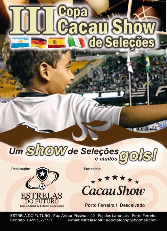 Terá início no próximo domingo (09/02), em continuidade ao calendário de eventos primeiro semestre de 2014 da Estrelas do Futuro, a Copa Cacau Show de Seleções. A competição contará com a presença de cerca de 160 alunos distribuídos em quatro categorias.