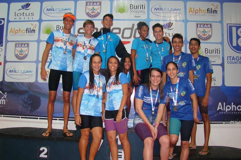 Prata nos 4x50m nado medley misto Infantil: Felipe Francisco, Sidnei Ouvidio, Rainara Oliveira e Isabela Bertoluchi.