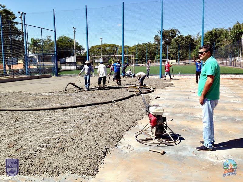Esta semana a quadra poliesportiva mais antiga do Clube de Campo das Figueiras, que está passando por um processo de revitalização, recebeu uma nova camada de piso de concreto.