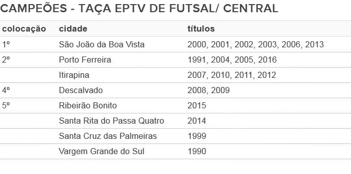 O jejum de títulos que chegava ao 11º ano chegou ao fim. Porto Ferreira, que não conquistava um título desde 2005, comemorou neste sábado seu quarto título da Taça EPTV de Futsal/São Carlos ao bater Nova Europa na final, por 3 a 1, no ginásio Milton Olaio, em São Carlos.