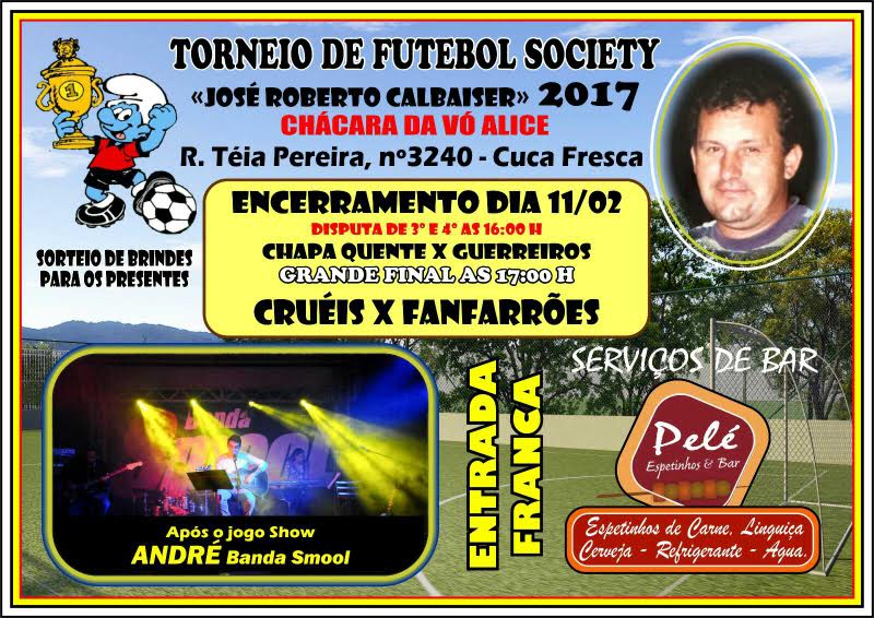 No sábado, dia 11 de fevereiro, acontecem os jogos finais do Torneio de Futebol Society "José Roberto Calbaizer".