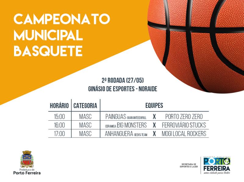 A Secretaria de Esportes e Lazer de Porto Ferreira realiza neste sábado (27/05), no Ginásio de Esportes Sylvio Marques Filho (Jardim Primavera), a segunda rodada do Campeonato Municipal de Basquete.