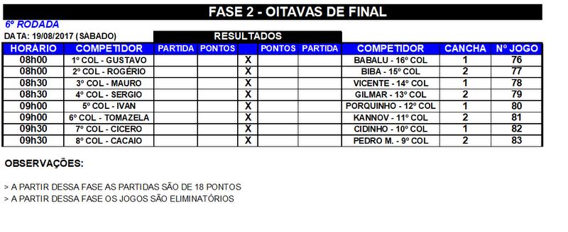 Todos os bochófilos foram ranqueados para definir a classificação geral e definir os confrontos. Dos 30 participantes, 16 ficaram para a disputa que continua nesse próximo sábado.