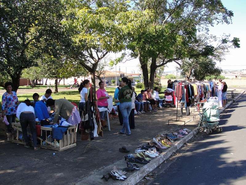 Na manhã de hoje (11) os membros de uma igreja evangélica de Porto Ferreira realizaram um bazar de roupas e calçados usados na bairro Cristo Redentor. As peças ficaram expostas na praça do bairro.