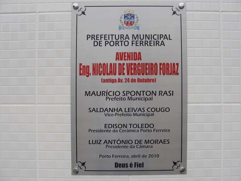 O CPF news, informativo da Cerâmica Porto Ferreira, em matéria de capa destaca que nossa cidade ganhou uma avenida que tem história. Refere-se a renomeação da Avenida 24 de Outubro para Avenida Engenheiro Nicolau de Vergueiro Forjaz, trazendo um breve relato sobre o homenageado.