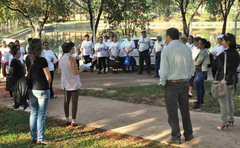 As mulheres receberam um panfleto contendo informações sobre o problema da violência física, sexual, psicológica ou moral, patrimonial, conjugal e institucional, além de uma rápida palestra da advogada Ângela Maria Villa Albieri sobre os direitos da mulher.