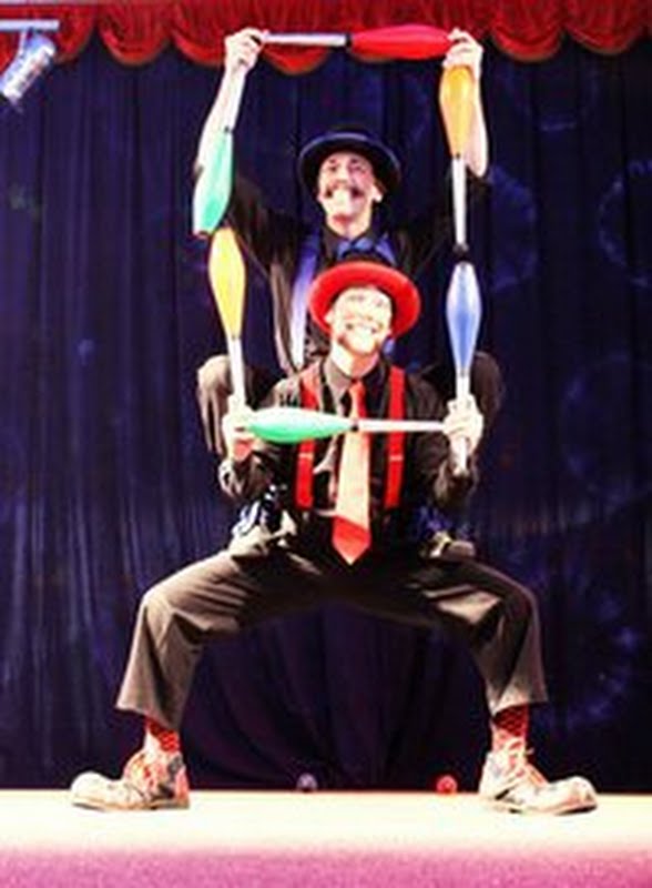 Irmãos Becker (SP) Dois palhaços cômicos demonstram de modo criativo e bem humorado diversas técnicas de malabarismo.