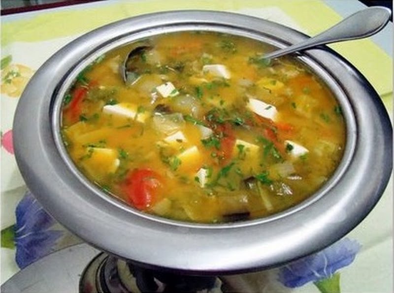 Pique o nabo, a cenoura, a abobrinha e o brócolis em cubos pequenos e reserve. Ferva as seis xícaras de água enquanto dá continuidade ao preparo dos outros ingredientes. Em uma panela com capacidade para 4 litros, aqueça o azeite e refogue a cebola roxa. Acrescente a água fervente e deixe cozinhar por 20 minutos, em fogo baixo. Adicione o macarrão e mantenha a sopa no fogo mais 12 minutos. Desligue, decore os pratos com salsinha fresca e sirva.