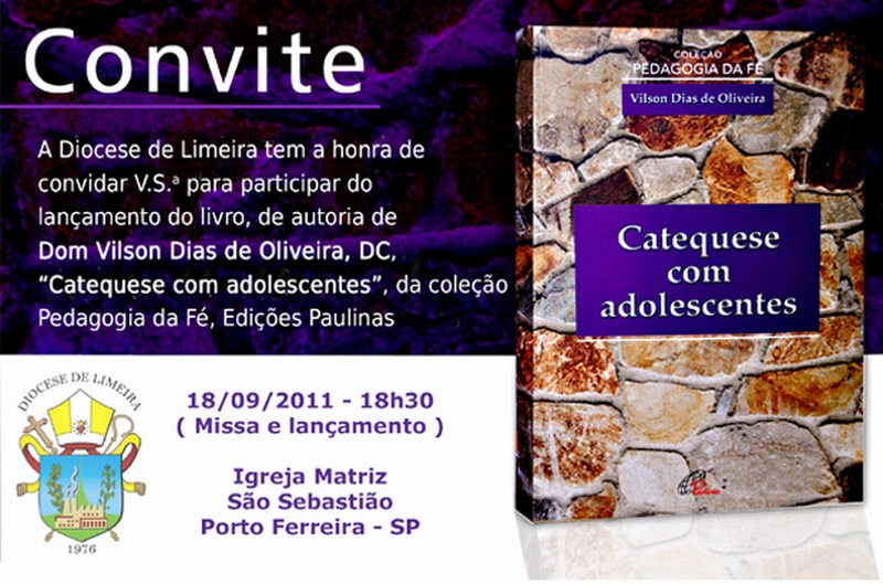 O bispo da Diocese de Limeira, Dom Vilson Dias de Oliveira, fará o lançamento de seu livro: “Catequese com adolescentes” em Porto Ferreira hoje, dia 18 de setembro, às 18h30, durante a Missa na Matriz de São Sebastião.