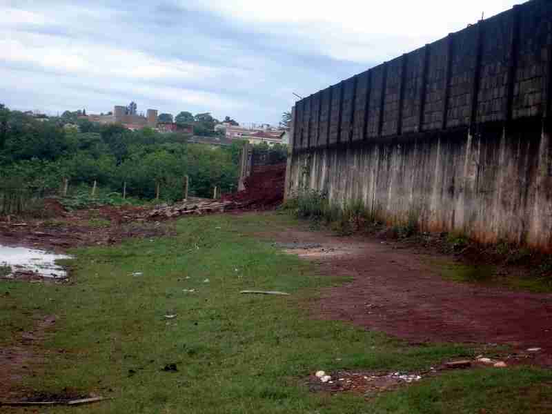A causa era um pedaço de muro que foi reformado recentemente e que caiu num trecho do passeio da Rua Nadir Zadra Ribaldo, que passa atrás do campo. Felizmente não havia ninguém passando no local.