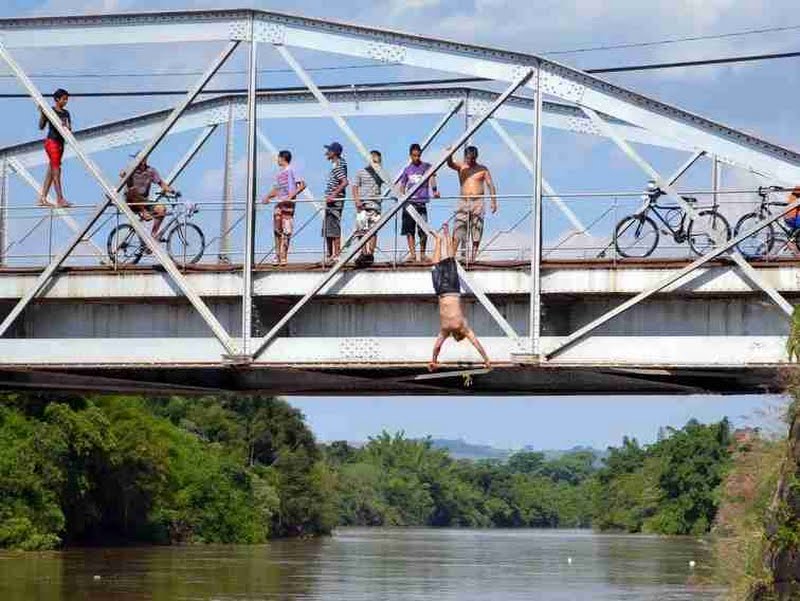 Calor e rio cheio fazem jovens desprezar o risco e saltam da ponte velha do Rio Mogi Guaçu, repetindo cenas que vemos todos os anos.