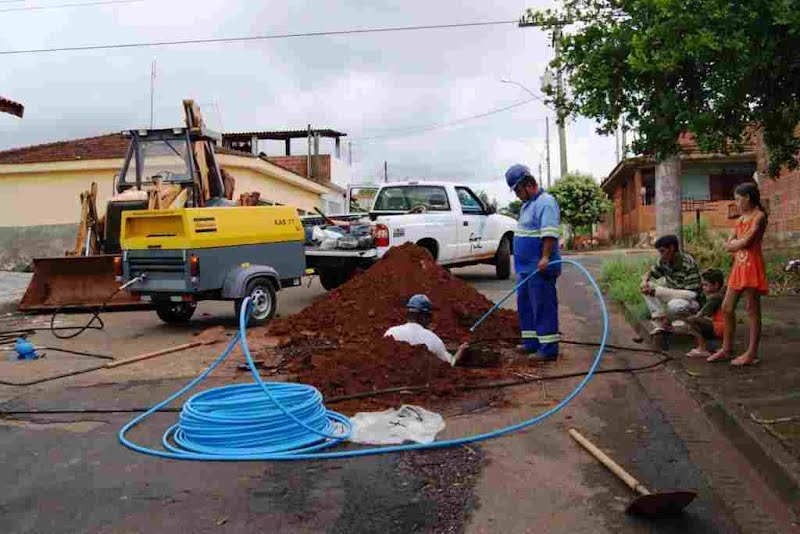 Há alguns dias, a equipe responsável pelas ligações de água está utilizando um novo equipamento, importado, que diminui o tempo de execução dos serviços e o tamanho da vala aberta na rua, minimizando os transtornos causados aos moradores da região e facilitando o recapeamento do local. Trata-se da tuneleira, equipamento com as características de um tatu que, alimentado por ar comprimido, perfura um túnel no solo entre a rede de água (adutora) e o ponto onde será instalado o cavalete.