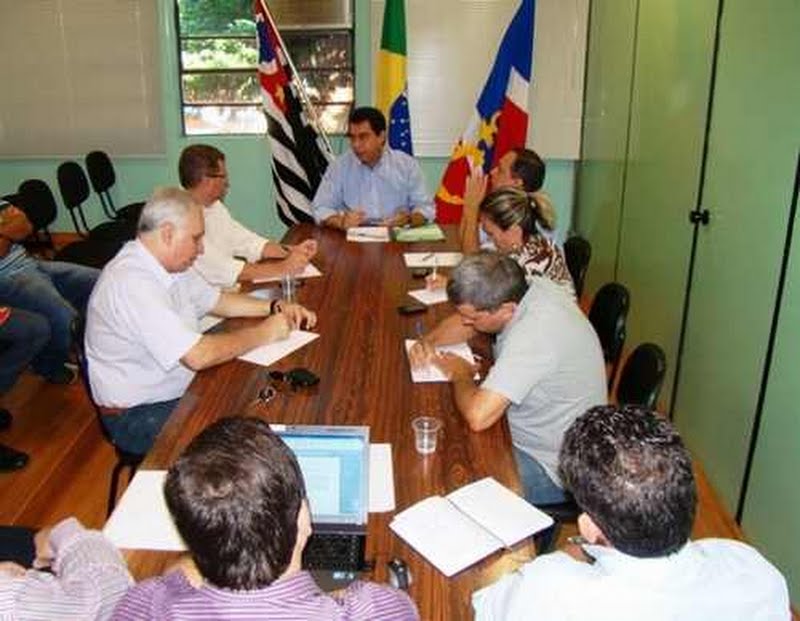 Prefeito Maurício Rasi (centro) e assessores durante reunião sobre a Feife 2012