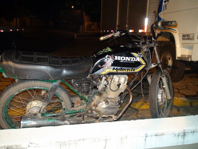 No sábado, dia 26 de maio, por volta das 21 horas os Policiais Militares do Rádio Patrulhamento, soldado PM Eduardo e soldado PM Francisco, durante patrulhamento pela Rua Joaquim Miguel Pereira – Jardim Progresso vieram a observar uma Moto Honda ML de cor Preta sem placa.