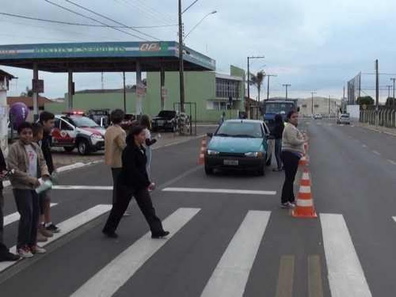 Na semana passada foi montado um mini bloqueio em frente a escola José Gonso, no Jardim Aeroporto, onde as crianças juntamente com policias militares e pessoas do setor de trânsito no município distribuíram panfletos e orientavam os motoristas.