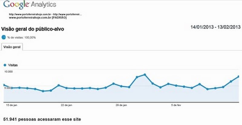 A audiência do site, predominantemente local, atingiu no período de 14 de janeiro de 2013 a 13 de fevereiro de 2013 um total de 154.150 visitas, sendo 51.941 visitas únicas, aproximadamente a população de Porto Ferreira, com a expressiva marca de 5.042.254 páginas visitadas em um período de 30 dias, considerando-se todas as formas de conteúdo publicadas, conforme mostra relatório do Google Analytics.