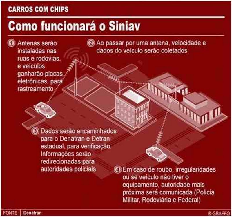 O chip conterá todos os dados do veículo, antenas receptoras serão instaladas em várias partes das cidades e receberam e transmitiram informações sobre os veículos que passam por elas. Se houver alguma irregularidade a polícia ou Detran da região é avisado.
