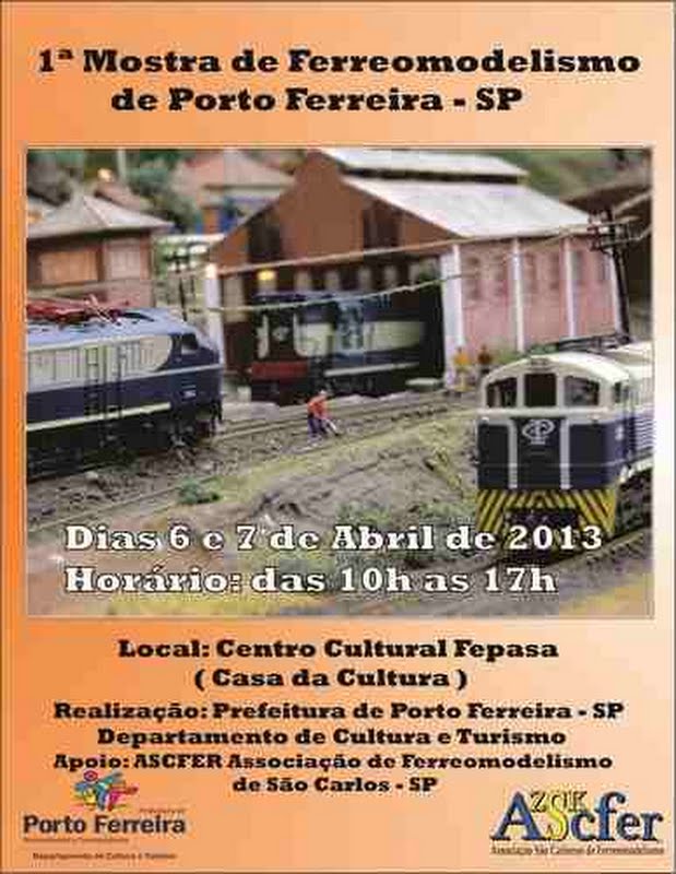 Em parceria com a Ascfer (Associação de Ferreomodelismo de São Carlos) a Prefeitura de Porto Ferreira por meio de seu Departamento de Cultura e Turismo realizará a I Mostra de Ferreomodelismo na nossa Cidade com a exposição de onze maquetes de estações ferroviárias paulistas.