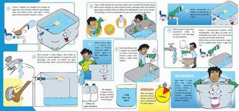 A limpeza é mais fácil do que se imagina, antes de iniciar a limpeza é preciso esvaziar o reservatório, mantendo apenas um palmo de água dentro dele. Durante o processo somente devem ser usadas água, água sanitária, bucha ou escovas novas. Nunca use sabão, detergente ou outros produtos.