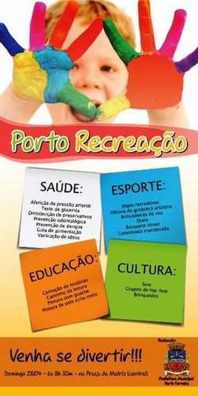 Em mais uma ação integrada entre os Departamentos Municipais da Prefeitura de Porto Ferreira, será realizado neste domingo (28/04), na praça Cornélio Procópio (Matriz – Central), a partir das 8h30, a primeira edição do projeto Porto Recreação.