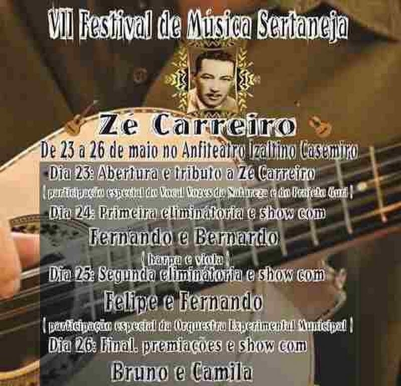 O Departamento de Cultura e Turismo de Porto Ferreira divulgou a programação do VII Festival de Música Sertaneja Zé Carreiro. Confira: