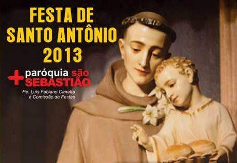Dia 13 de junho – quinta-feira – 19 horas Procissão – 20 horas – Missa Solene com a benção dos pães e venda do Bolo Bento.