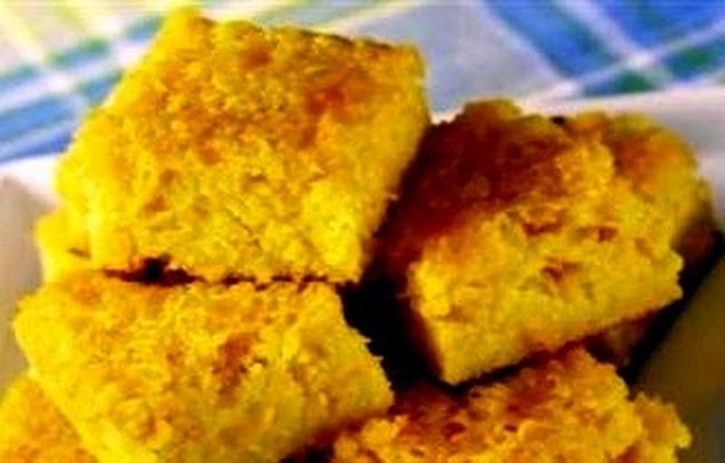 Preparo: Bata no liquidificador os ovos, 3 xícaras(chá) de leite, o queijo ralado, o preparo para polenta, o açúcar e o coco ralado.