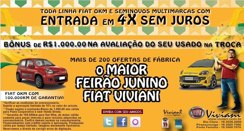 As Concessionárias Fiat Viviani estão com o maior feirão junino da região.