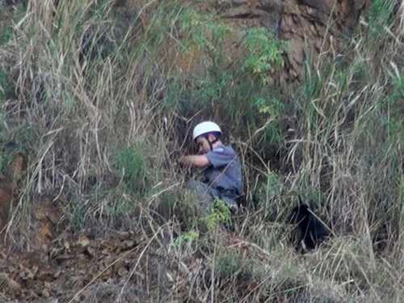 Corpo de Bombeiros de Porto Ferreira resgata cão preso em paredão de pedras