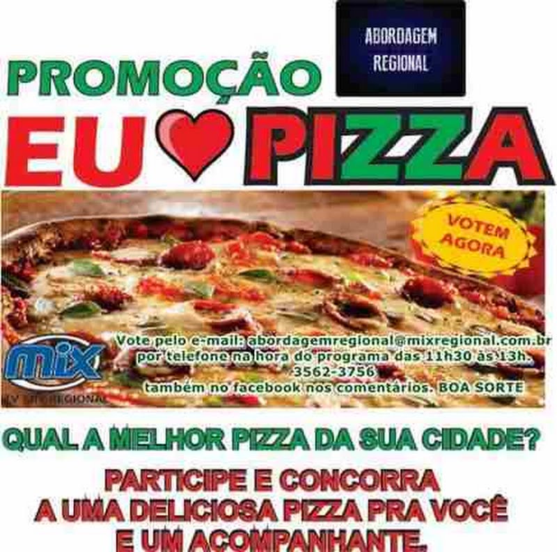 Na última quarta-feira, 10 de julho, comemorou-se o Dia da Pizza, e motivada pela história abaixo, o Programa Abordagem Regional apresentado por Paulo Carvalho de segunda a sexta às 11h30, pela TV MIX, lançou a promoção eu amo pizza. Para participar é só enviar um e-mail para o endereço eletrônico: abordagemregional@mixregional.com.br e responder a seguinte pergunta: QUAL A MELHOR PIZZA DE SUA CIDADE? No Programa Abordagem Regional de segunda feira, dia 15 de julho, será realizado o sorteio entre os participantes. O vencedor vai ganhar uma pizza do estabelecimento mais votado. O ganhador do prêmio terá o direito de levar um acompanhante, a produção do programa vai registrar em vídeo e apresentar no Programa Abordagem Regional. Deixe seu recado e Boa Sorte.
