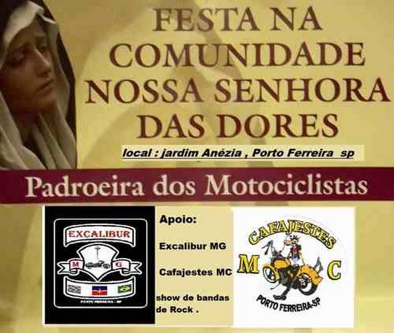 No dia 15 de setembro, às 9 horas, será realizada missa solene da padroeira dos motociclistas na Comunidade Nossa Senhora das Dores, Jardim Anésia. Após a missa a procissão percorrerá as ruas da cidade com encerramento na Sede Paroquial (São Sebastião).