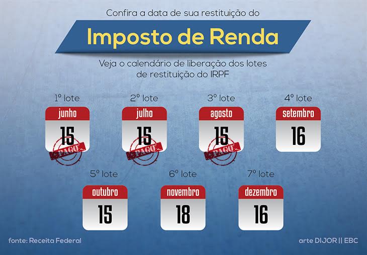 A Receita Federal libera hoje (16) nos bancos o pagamento do quarto lote de restituições do Imposto de Renda (IR) Pessoa Física 2013. Todos os anos são liberados sete lotes regulares. O último está previsto para 16 de dezembro.