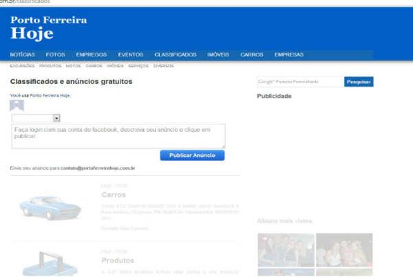 1. Acesse a página de classificados http://www.portoferreirahoje.com.br/classificados