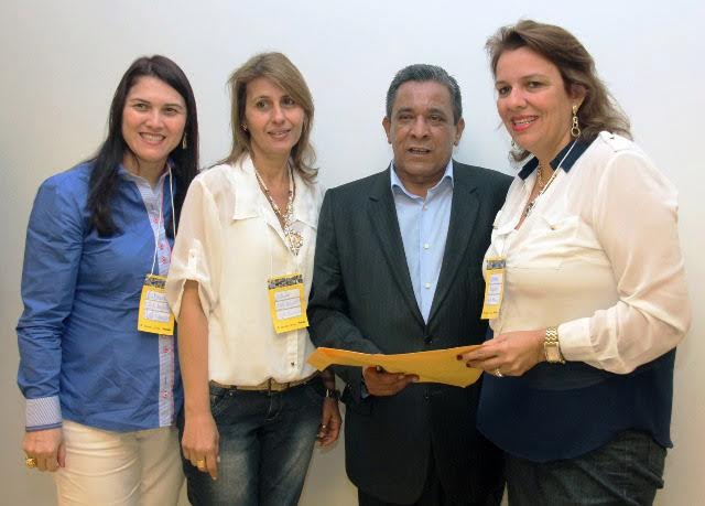 Servidoras municipais, secretário Tadeu Morais e prefeita Renata Braga entregando solicitações do município