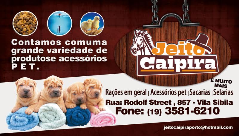 A Direção da Agropecuária Jeito Caipira convida a todos a comparecerem na inauguração de sua loja neste sábado, 23 de novembro de 2013. A partir das 09:00h haverá muita pipoca e algodão doce para crianças e adultos.