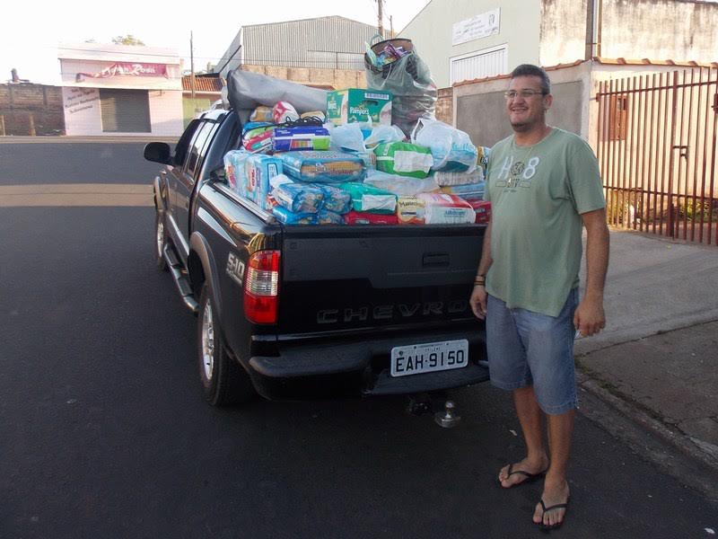 Vanderlei arrecadou em Porto Ferreira cerca de 200 pacotes de fraldas na cidade, que foram entregues na oportunidade.