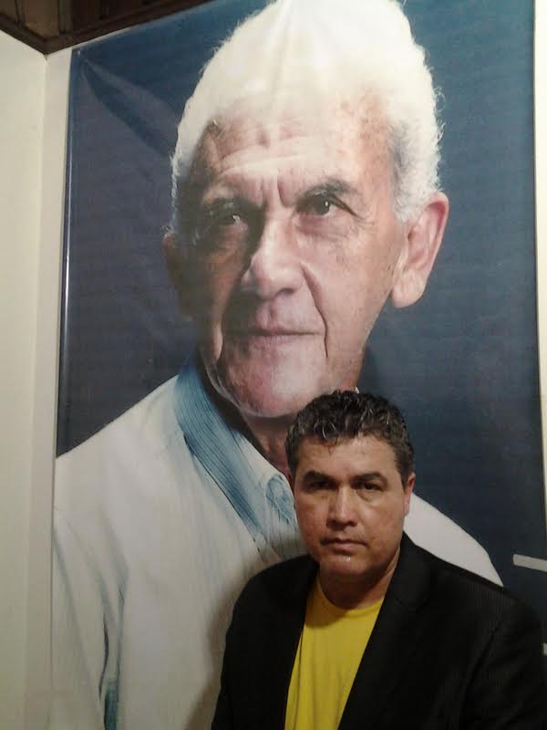 Dori Américo, tendo ao fundo, a foto do seu pai Ninão